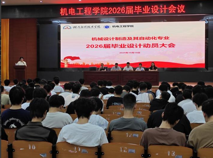 2025 年 10 月 10 日,太阳成集团tyc7111举行机械设计制造及其自动化专业 2026 届毕业设计动员大会。大会以 “校企深度融合赋能毕业设计,产教协同共育就业型人才” 为主题,推行 “企业带实践设计、学校抓论文质量” 双轨培养机制,旨在打通毕业到就业 “最后一公…