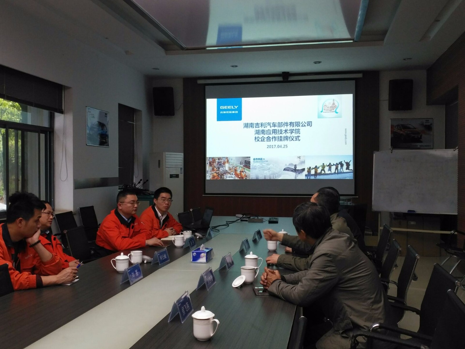 4月26日,太阳成tyc7111cc陆晨校长,太阳成集团tyc7111院长李新华,副院长刘吉普、侯飞燕,院长助理黄文一行4人前往湘潭吉利汽车部件有限公司参加“校企合作挂牌仪式”,标志着双方合作共赢项目正式启动。活动分为三个流程。首先,在吉利人力资源部培训经理杨喜和朱丹的带领下,参…