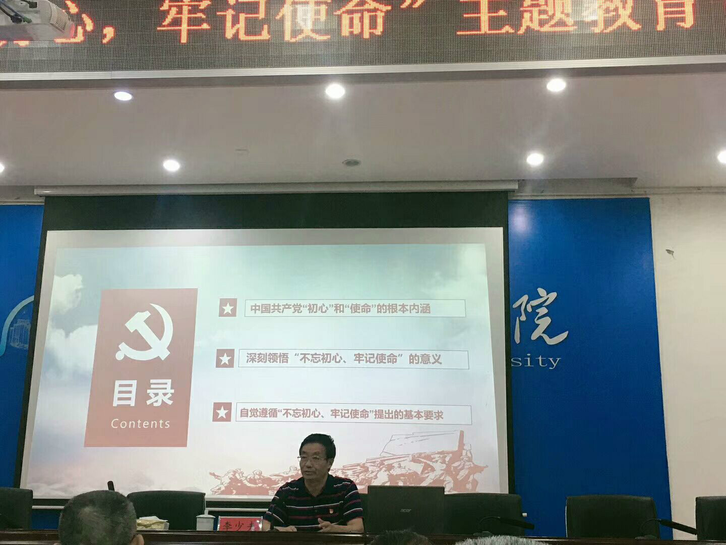 为贯彻落实习近平总书记在“不忘初心、牢记使命”主题教育工作会议上的讲话,提高我校党员党性修养,10月22日上午,我校在广言堂召开“不忘初心,牢记使命”主题教育专题党课,本次党课由校党委副书记、董事长李少夫同志主讲。 李少夫同志就如何做新时代合格共产党员,向我们…