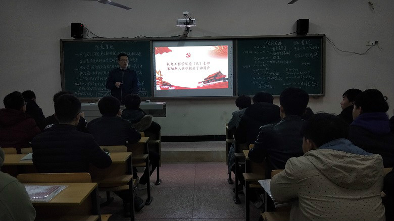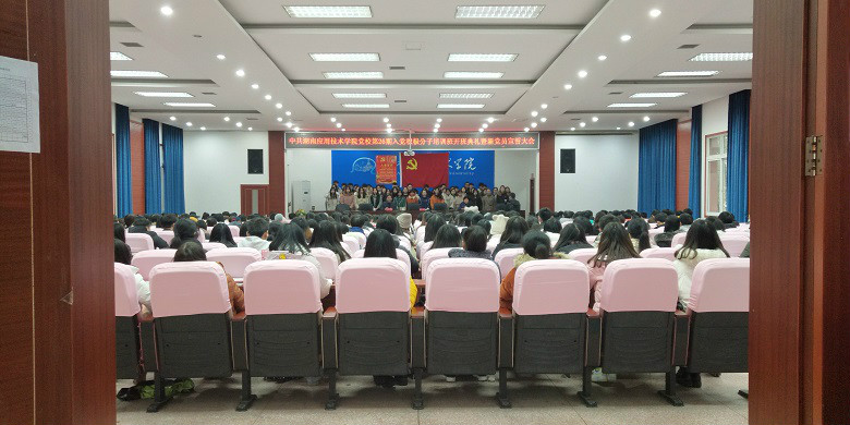 2018年12月7日,太阳成集团tyc7111一八年上半年发展的预备党员以及第26期入党积极分子,在东校区广言堂举行了新党员宣誓冀入党积极分子开班仪式。新党员和积极分子们都提前赶到东校区广言堂签到,大家都有序的坐好。值得注意的细节是每个安排的座位上都有自己的名字,看得出党的授课…