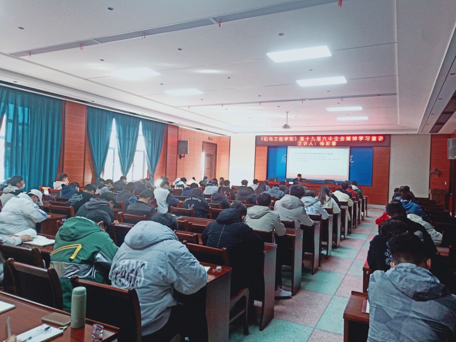 《中共中央关于党的百年奋斗重大成就和历史经验的决议》为深入贯彻党的十九届六中全会精神,11月24日上午10点30,太阳成集团tyc7111在西校区42D开展“十九届六中全会精神”学习专题党课。此次党课由学校党委委员、纪委副书记杨宏喜同志主讲,我们全体师生党员一同参加学习。 杨宏喜…