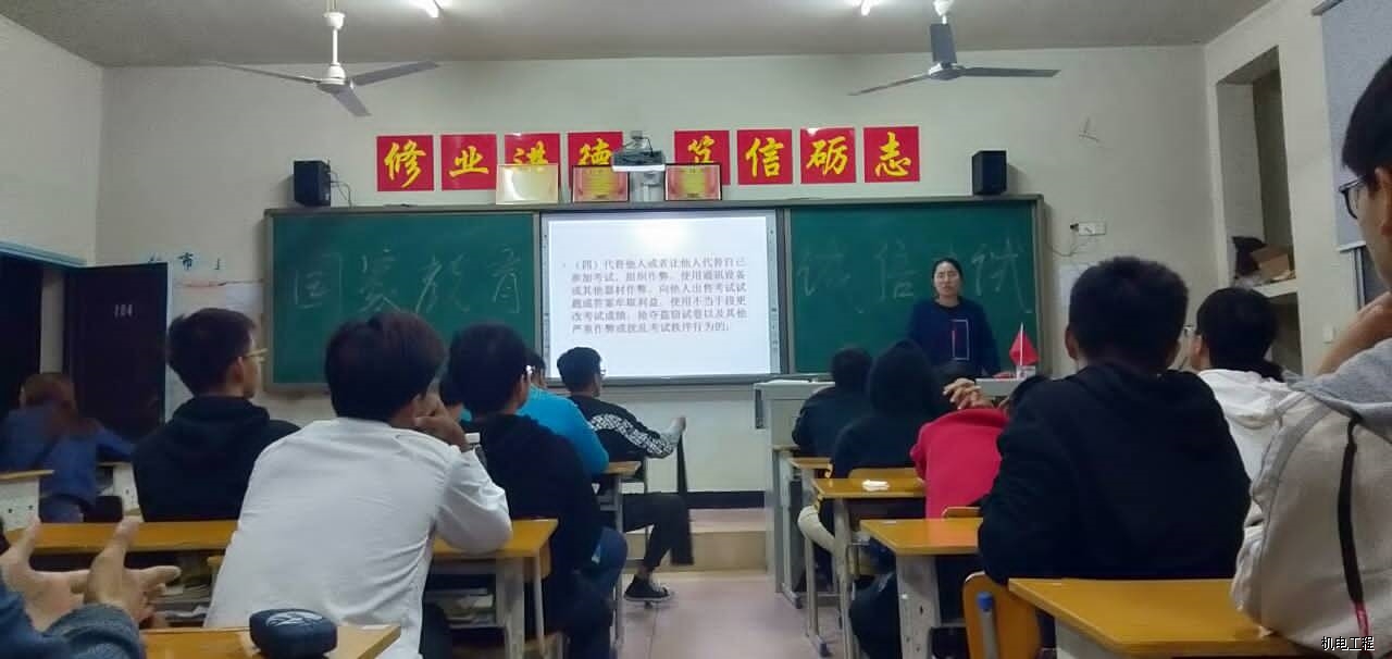应学校要求,机制19104班于10月31日晚7点召开关于“国家教育诚信考试”的主题班会。本次班会由机制19104班辅导员王佳老师主持。本次班会以PPT的形式呈现。王佳老师先以一则发生在本学院一件真实的例子开始了本次的班会,然后从中华人民共和国教育部令第41号《普通高等学校学生管理规定》入手,让我们有了关于高校学生管理规定的意识,紧接着是用太阳成tyc7111cc新生手册的相关内容,巩固和加强了我们对《学生手册》有关内容的学习。