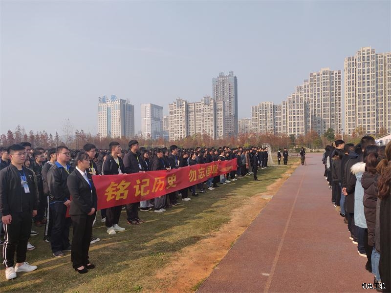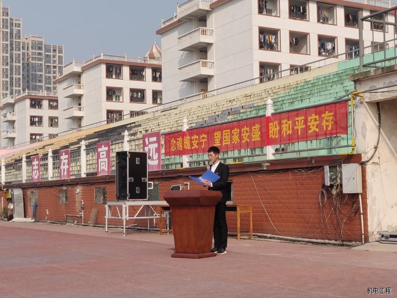 暨时,同学们穿黑色着装,排成整齐的方队,唱国歌,降半旗,默哀一分钟。党委副书记刘孟初同志宣读祭词,表达自己的哀思,呼吁同学们一起为南京大屠杀的遇难同胞默哀,缅怀先烈,祭奠历史,让世界了解令人悲愤的历史事实。