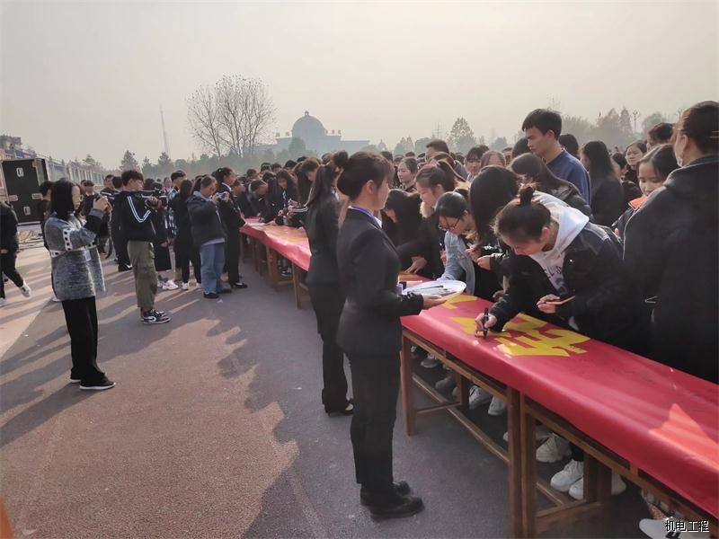 最后,主持人引领领导及同学们进行“铭记历史,勿忘国耻”主题签名活动,在横幅上写下了属于中华民族的沉重的一笔。