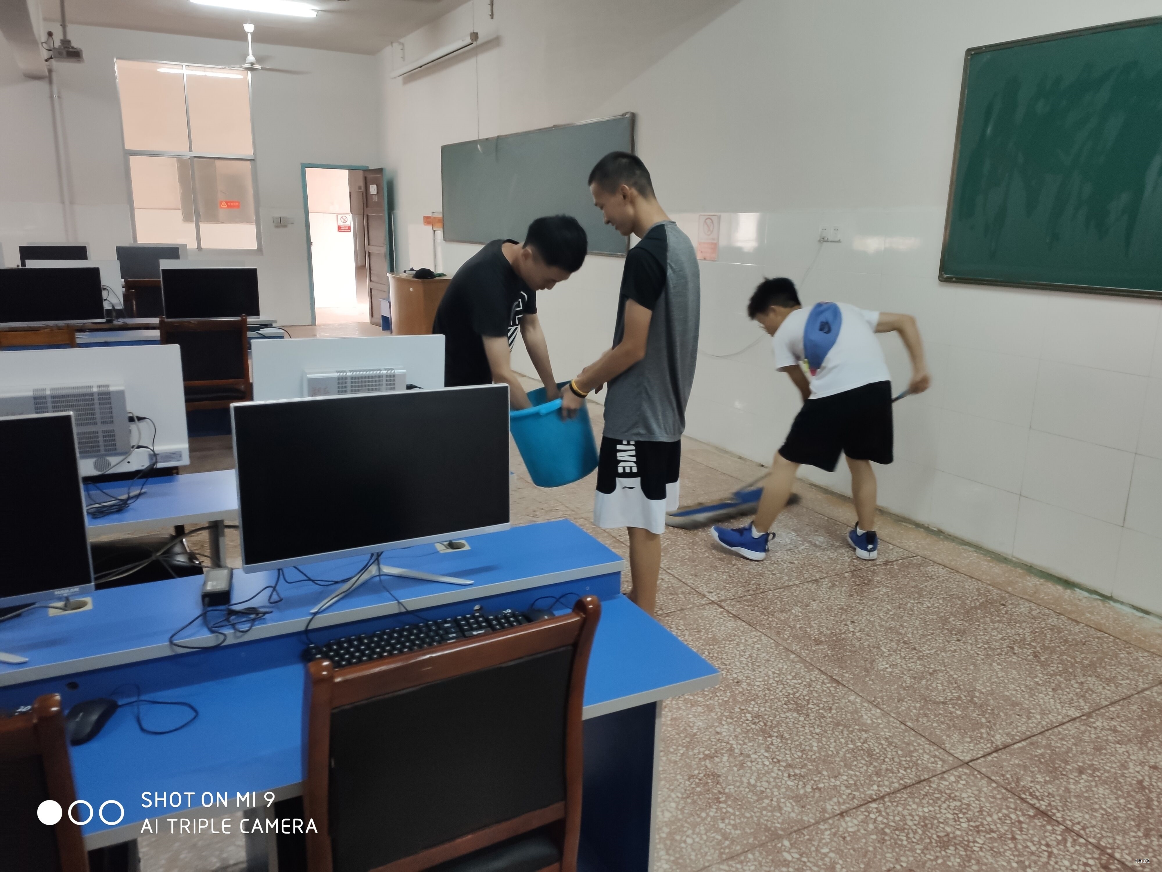 劳动现场,支部书记以身作则,学生党员争先恐后,大家纷纷拿起清洁工具,分工明确,对机房的桌面、窗台及地面等进行了清理。经过一个多小时的劳动,机房被清扫得焕然一新。为返校学子营造了良好的学习环境。