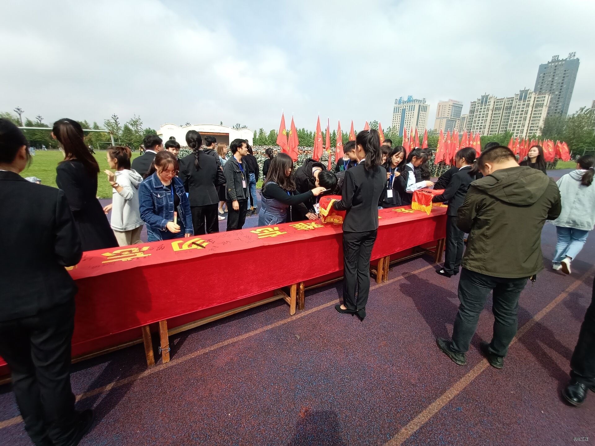 2020年9月18日我校在西校区田径场开展以“勿忘国耻,吾辈自强”为主题的纪念活动,由全校师生共同参与。其目的在于纪念中国抗日战争胜利,以及在广大青年大学生中大力弘扬以爱国主义为核心的民族精神和以改革创新为核心的时代精神。