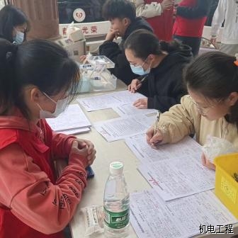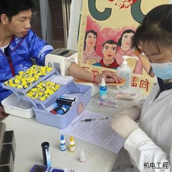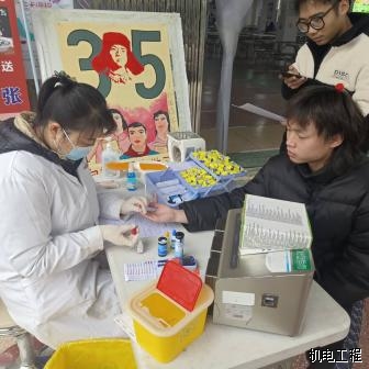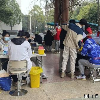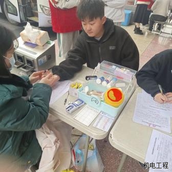 清晨还有些寒意,然而这却并未阻却同学们的献血热情。同学们早早的着上外衣有序地排起长队,依次进行信息登记、血液类型检验、静脉采血等环节。等待献血期间,同学们紧张而兴奋,其中不乏参加过好几次献血活动的同学,但是他们仍旧为自己的行动能给需要的人提供帮助、挽救更多的生命而感到高兴。