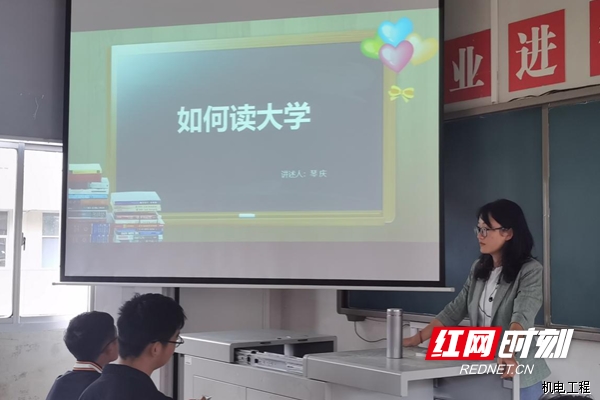 太阳成集团tyc7111辅导员琴庆正为新生讲授第一堂课。