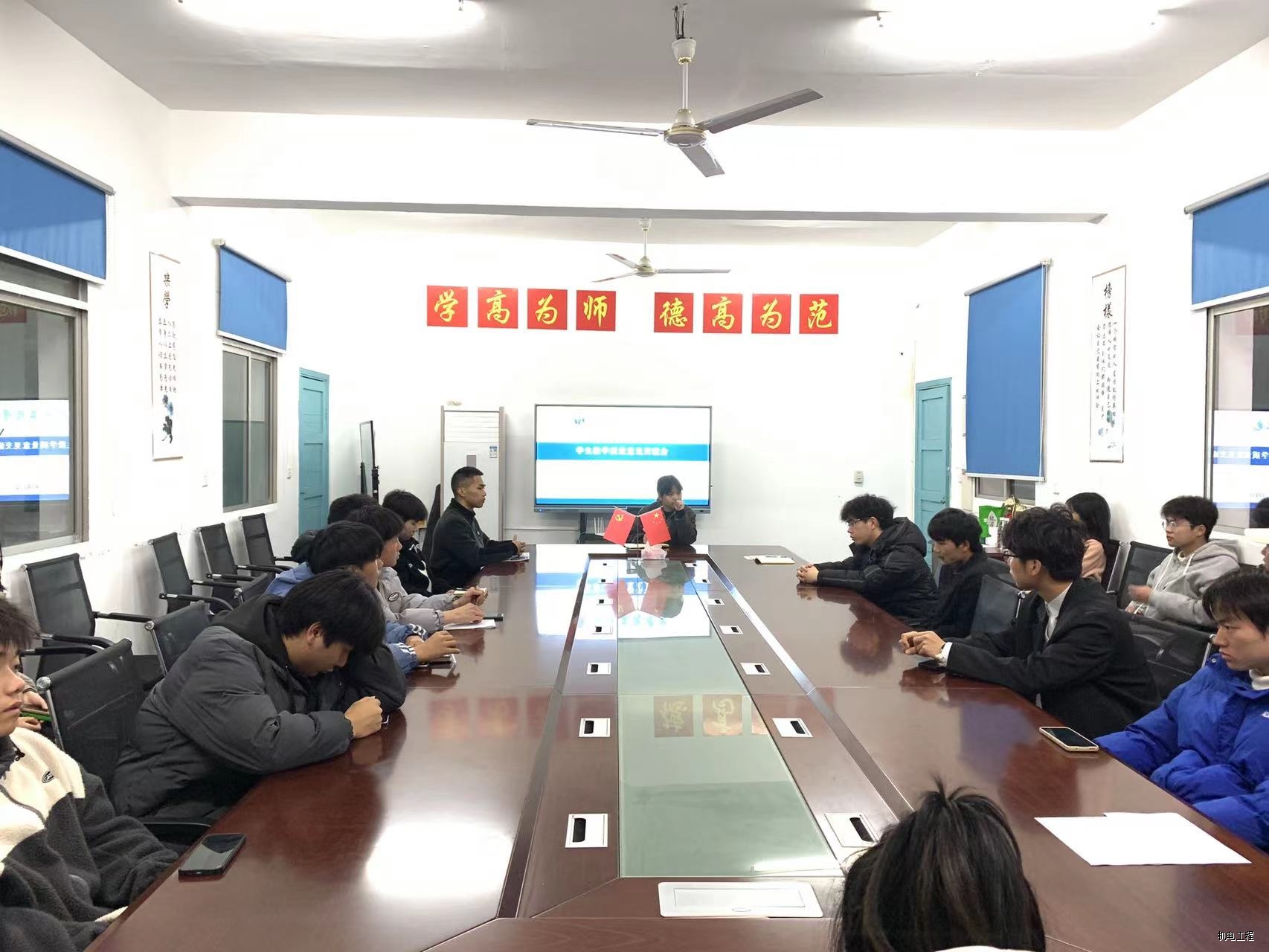 会议过程中,各班代表积极发言,总体情况大概有以下四点:专业课授课教师认真负责,但存在赶进度情况,学生跟不上;高数老师年纪偏大,授课时口音较重,学生听不懂;部分班级存在脱离公共课教学课堂,与授课教师不沟通不交流的情况;毕业班反映毕业设计进程较慢,部分校外指导教师消息回复速度慢等问题。