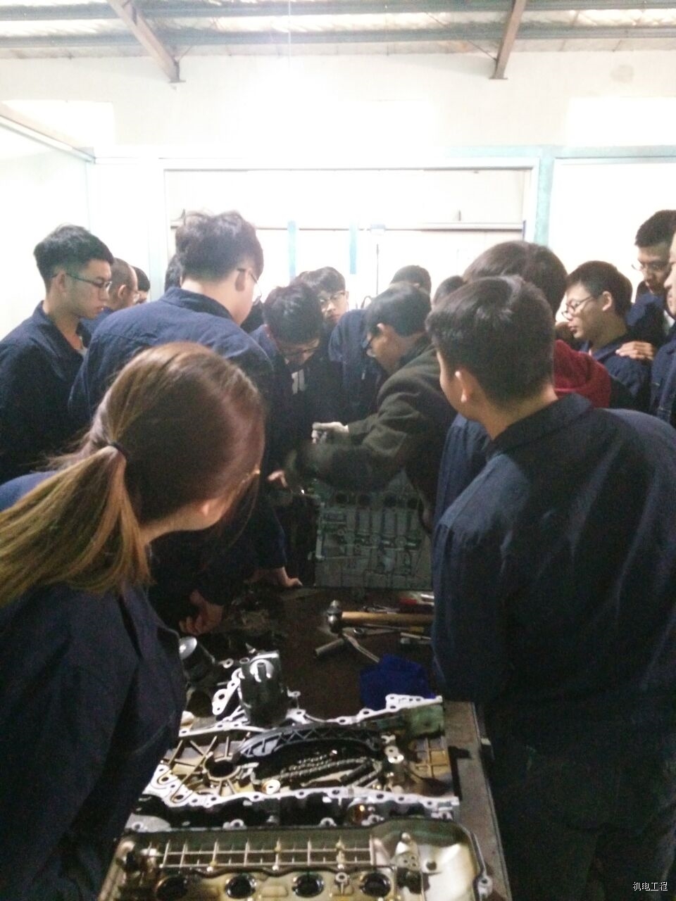 在实际操作之前,老师先给我们讲解了汽车发动机构造的一些基本知识,进一步巩固和加强了汽车构造和原理课程的理论知识,为后续课程的学习奠定必要的基础。来到发动机拆装车间后,同学们学习了正确使用拆装设备、工具、量具的方法,熟悉了零部件拆装后的正确放置、分类及清洗方法,在老师的示范操作下,同学们掌握了具体操作的方法。