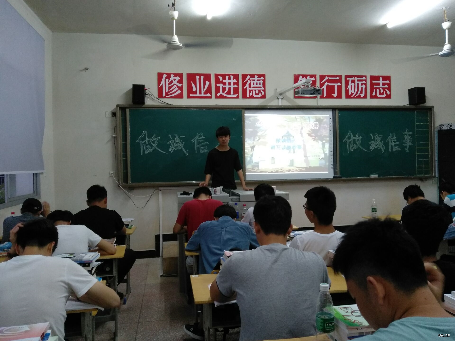 为培养学生“诚信”的优良品质,要求学生从自我做起,从现在做起,从每件小事做起,促进良好班风、学风的形成。5月10日,机制B1603班在22栋303教室举办了“做诚实人,做诚实事”主题班会,并在班会中开展了“做诚实人,谱写诚实故事”的主题演讲活动。