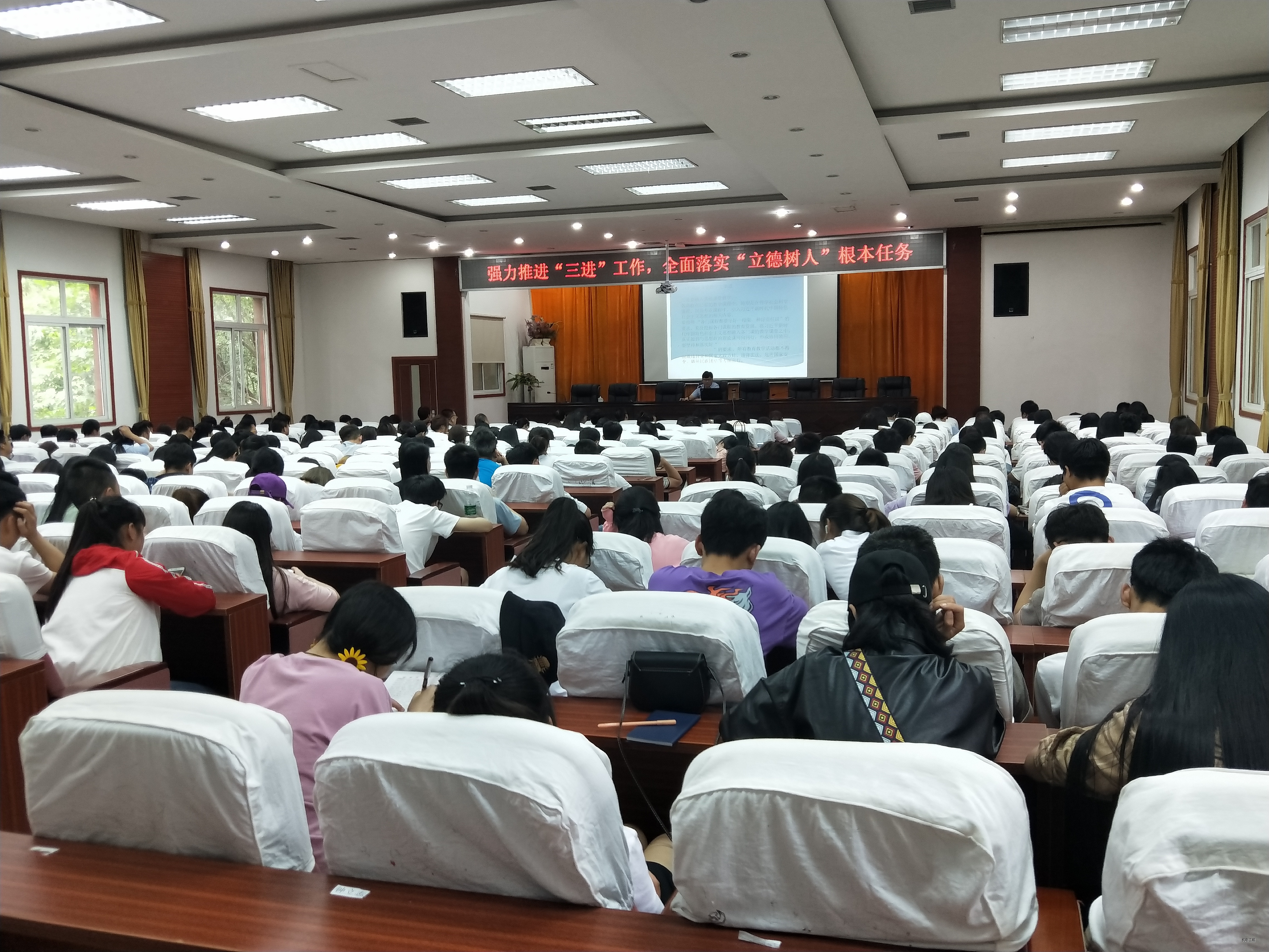 2018年5月10日下午16:00我校召开十九大精神“三进”工作座谈会,讲解十九大精神“进教材、进课堂、进头脑”具体工作。学工处正副处长,各学院学工副院长,马克思主义学院主要领导和老师,全校辅导员,各班班长,校学生会、团委会主要干部参加座谈会,会议由李钢书记主持。