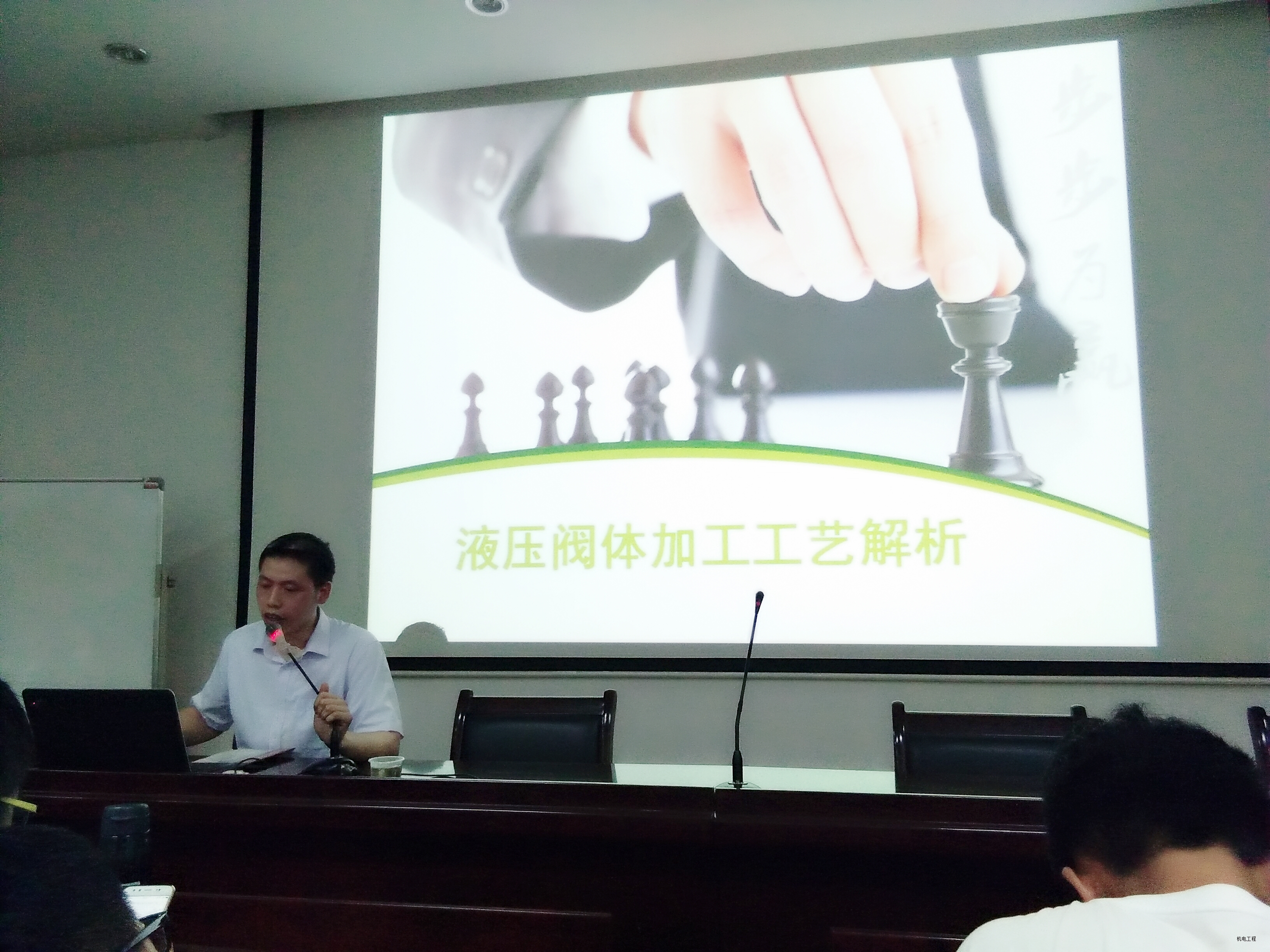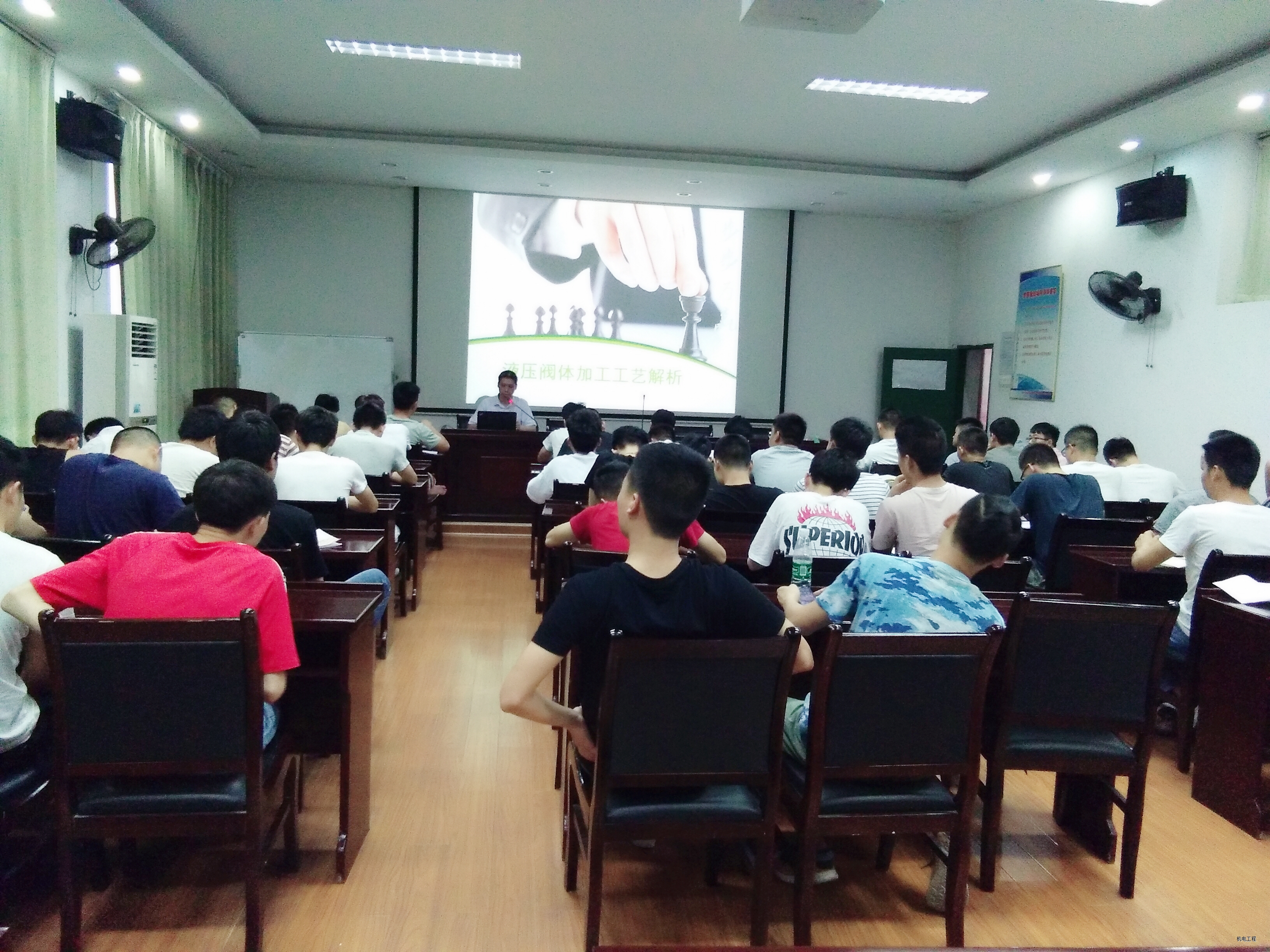 在日常学习上,同学们不停的汲取新鲜知识,收获来自于课本以外的营养成分。一周以来召开的学习专题讲座颇多,具体有:成钢高级工程师的齿轮类加工工艺专题讲座、杨美花高级工程师的轴类加工工艺专题讲座,黄丽琴高级工程师的箱体壳体类加工工艺专题讲座、陈灌生高级技师的液压阀体类加工工艺专题讲座、谢国政高级工程师的盘套类加工工艺专题讲座、罗军技能大师的创新技术讲座、周铭高级工程师的先进加工工艺讲座。这些各具特色的讲座不仅拓展了同学们的学习视野,而且加深了同学们对本专业的认识,引领同学们从基础知识领域走向专业技能道路。在进厂学习方面,杨美花、黄丽琴、成钢和谢国政四位高级工程师分别带领同学们参观并讲解了轴类零件、箱体壳体类零件、齿轮类零件、盘套类零件从毛坯加工成型工艺过程。另外,高铭和梁声始高级工程师分别带领同学们观看并讲述了大型机械加工、水切割、等离子切割、激光加工、冷冲压、铂金成型、水压试验等高端技术工艺。在参观学习过程中,同学们不懂就问、查漏补缺,主动和带队老师以及车间内的工人师傅探讨工艺问题。