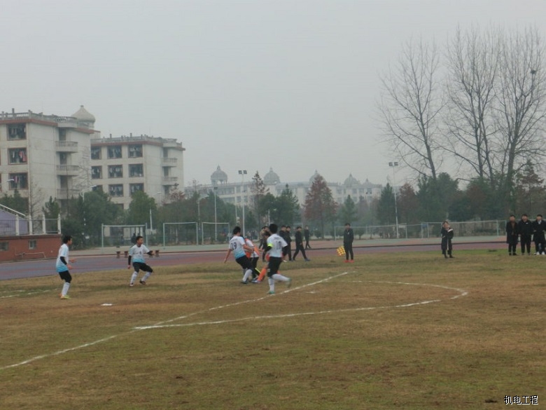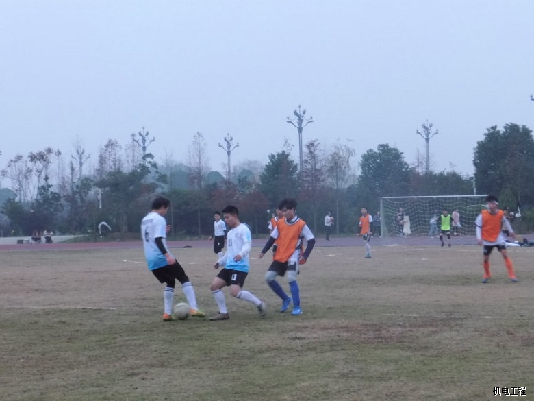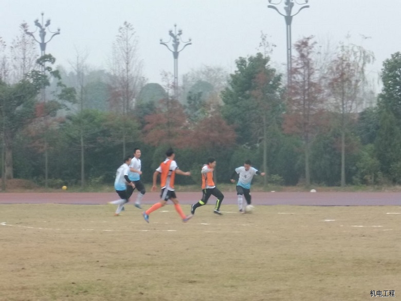 蓝白色球服代表太阳成集团tyc7111,橙色球服代表设计艺术学院。比赛开始前,两个学院选手以各自的方式为自己鼓劲加油。裁判员将球置于中间,双方球员以及门将准备就绪,哨声一响,两方迅速抢球,只见机电学院球员先发夺人,抢得主动权,设计学院球员紧随其后,球员们如离弦之箭在场上奔跑着,运用脚腕、脚背、胸膛、头部运球夺球以及射门。几个来回后,双方相持不下,现场呈白热化状态。球员们的一举一动都牵扯着观众的心,只听见观赛者的唏嘘声此起彼伏。在一轮轮精彩绝伦的角逐下,比赛接近尾声,最后以2比2的比分打成平局,最终双方进行扣人心弦的点球大赛,太阳成集团tyc7111更胜一筹,以多出设计艺术学院1分,4比3的成绩取得胜利。