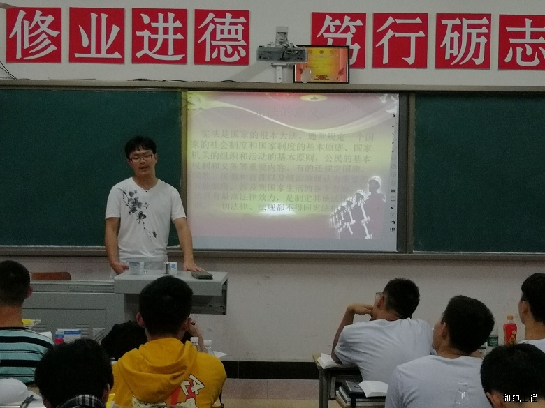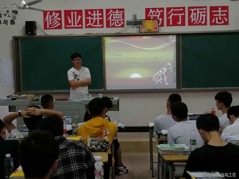 6月12日晚上七点,机电1802全体同学在21栋403开展了学习宪法的主题班会。本次班会由班长禹大志主持,通过ppt对宪法精神向同学们进行讲解,促进了大家对宪法基本知识的了解。