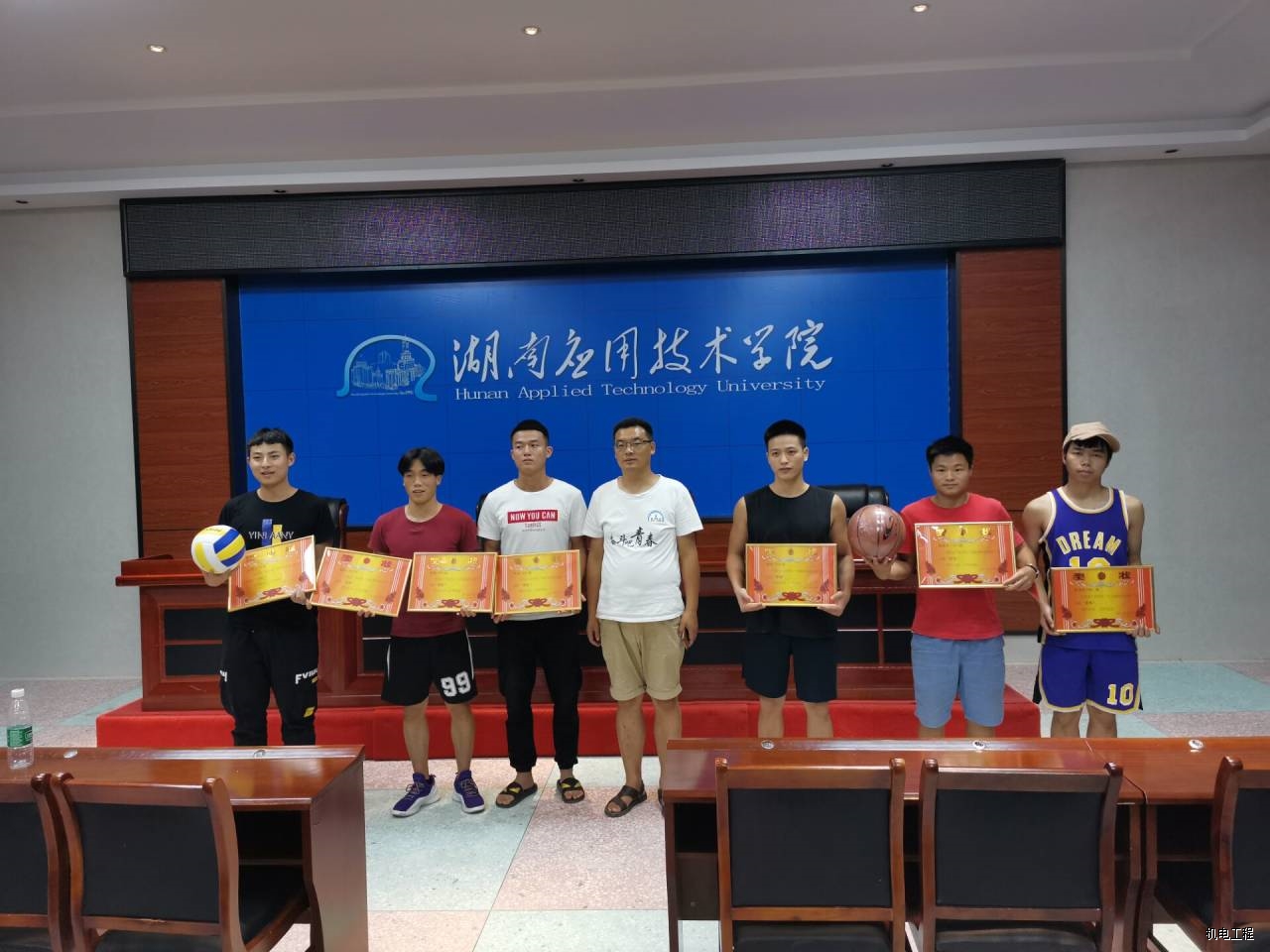 会议进行到最重要的一项。主持人宣读了对上学期获奖的班级与优秀运动员进行表扬和鼓励,并颁奖拍照留念。